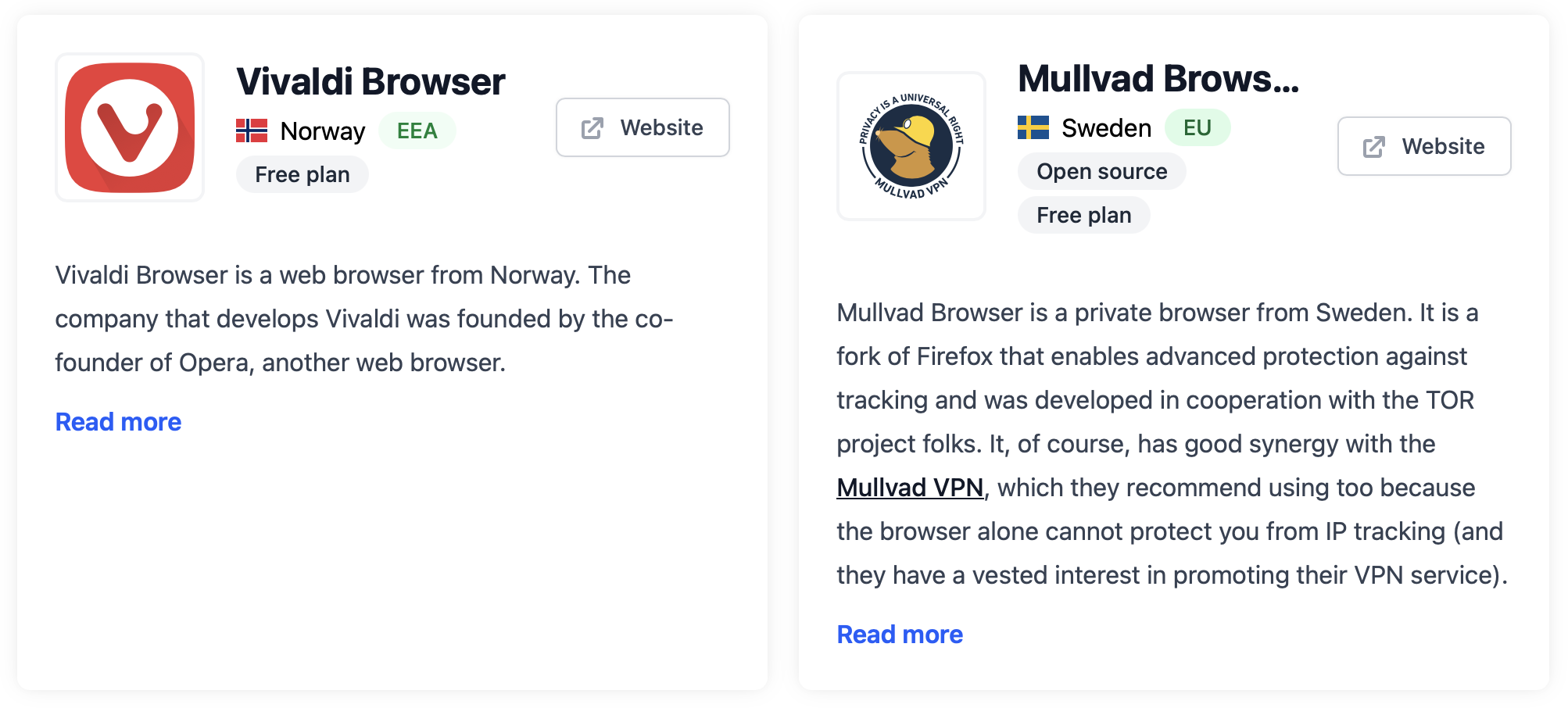Hardware and operating systems is a bit more difficult, but there is the Dutch Fairphone and the French replacement of Google for Android by Murena.